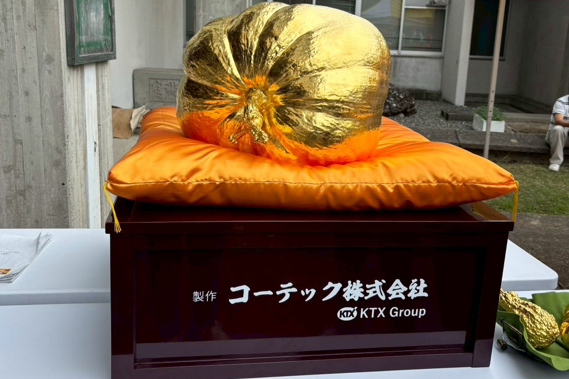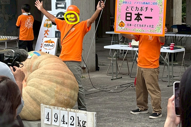 今年優勝した生産者さんは2024年に続き2年連続で日本一に輝きました。優勝者は、優勝特典として10月にアメリカ西海岸で行われるどでカボチャ世界大会への招待券を贈呈されていました❁